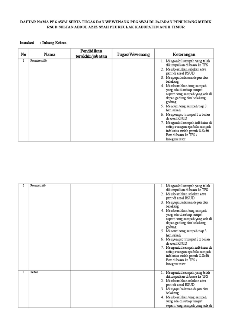 Uraian Tugas Petugas Kebersihan Tukang Kebun Pdf